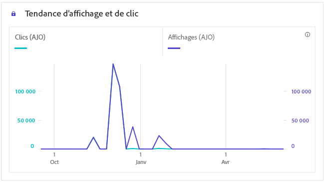 Le graphique Tendance des impressions et des clics présente une analyse détaillée de l’engagement de vos profils avec vos messages in-app, offrant des informations précieuses sur la manière dont les profils interagissent avec votre contenu.