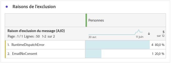 Exclusions sortantes : nombre de profils qui ont été exclus par Adobe Journey Optimizer.