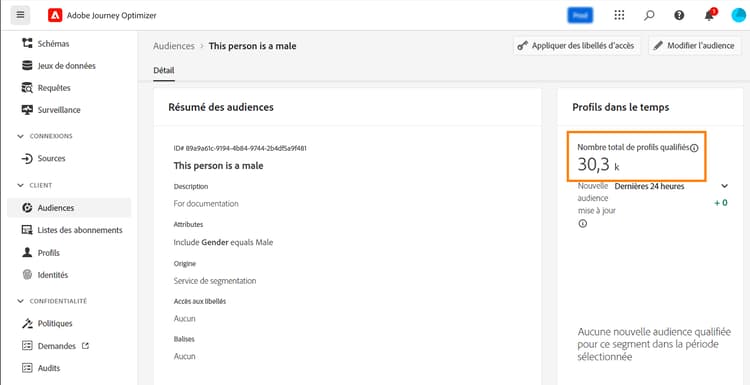 Pour résoudre les alertes Lecture d’audience, vérifiez la taille de l’audience dans l’interface d’Experience Platform.