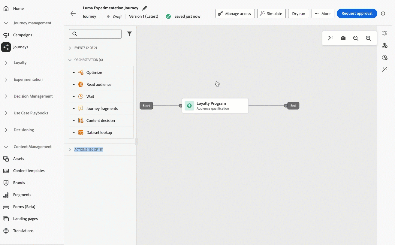 Une nouvelle activité Recherche de jeu de données dans les parcours vous permet de récupérer dynamiquement des données des jeux de données d’enregistrement Adobe Experience Platform au moment de l’exécution, ce qui vous donne accès à des informations qui ne font pas partie de la payload du profil ou de l’événement, afin que les interactions des clients restent pertinentes et opportunes.