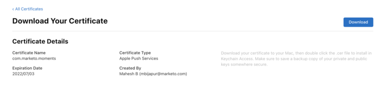 Chaque fois que vous ajoutez un nouvel appareil, vous devez mettre à jour vos profils d’approvisionnement et générer de nouveaux certificats. Assurez-vous que votre projet Xcode pointe ensuite vers les profils et certificats appropriés, puis importez ces certificats dans Marketo.