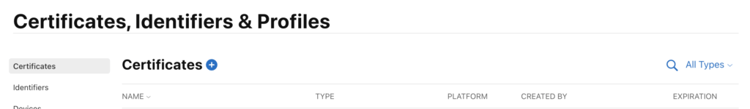 - Cliquez sur le dossier « Certificats->Tous » sous « iOS, tvOS, watchOS ».