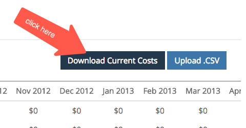 Accédez à la droite de l’écran et cliquez sur Télécharger les coûts actuels . Cette option permet de télécharger une feuille de calcul au format CSV.