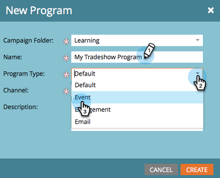 Nommez le programme « Mon programme de salon professionnel », puis sélectionnez « Événement » pour le Type de programme.