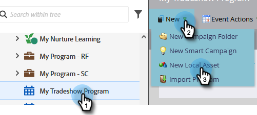 Dans Mon programme de salon professionnel, cliquez sur Nouveau et sélectionnez Nouvelle ressource locale.