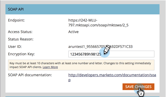 Définissez une Clé de chiffrement appropriée, cliquez sur Enregistrer les modifications et transmettez toutes les informations à votre développeur.