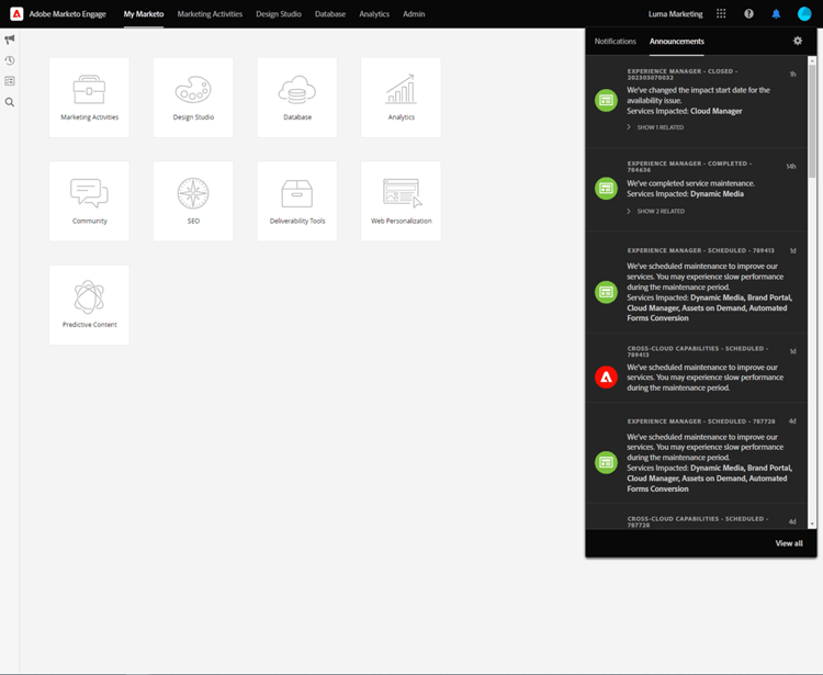Affichez et interagissez avec des notifications spécifiques aux produits et des annonces générales de produits Adobe directement dans l’application.