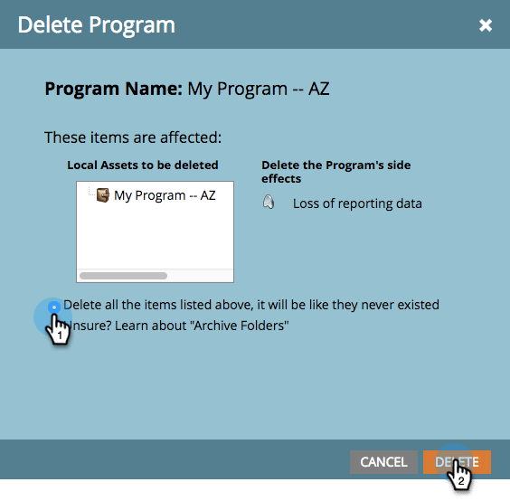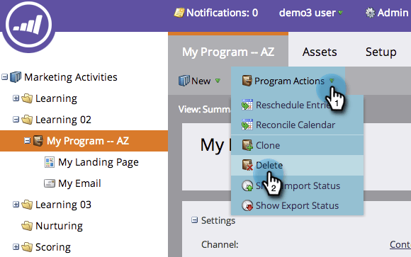1. Cliquez sur le menu déroulant Actions du programme et sélectionnez Supprimer.