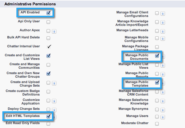 Dans la section Autorisations d’administration, assurez-vous que les cases suivantes sont cochées :