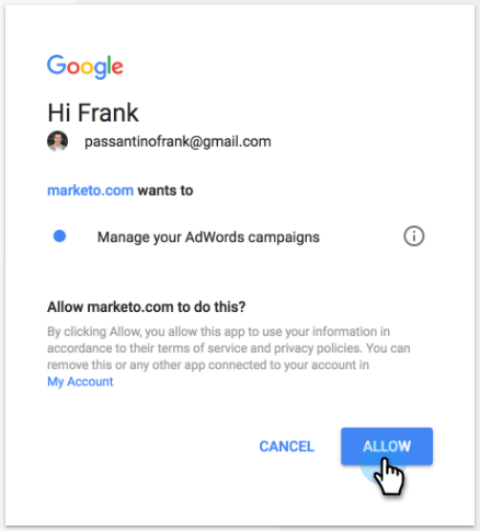 Pour connecter un compte Google AdWords, cliquez sur Autoriser.