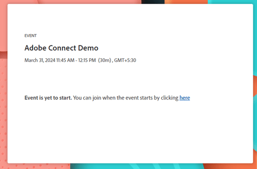 Les participants qui lancent le lien de l’événement plus de 15 minutes avant le début prévu verront une page de destination les informant d’attendre le début de l’événement.