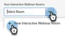 Vous pouvez choisir une salle de webinaires existante ou en créer une nouvelle. Dans cet exemple, nous en créons un nouveau. Cliquez donc sur le menu déroulant Sélectionner une salle et choisissez Nouvelle salle de webinaire interactif.