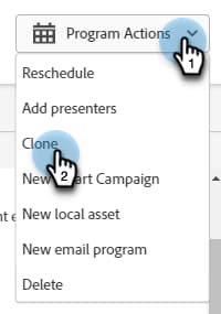 Cliquez sur le menu déroulant Actions du programme et sélectionnez Cloner.