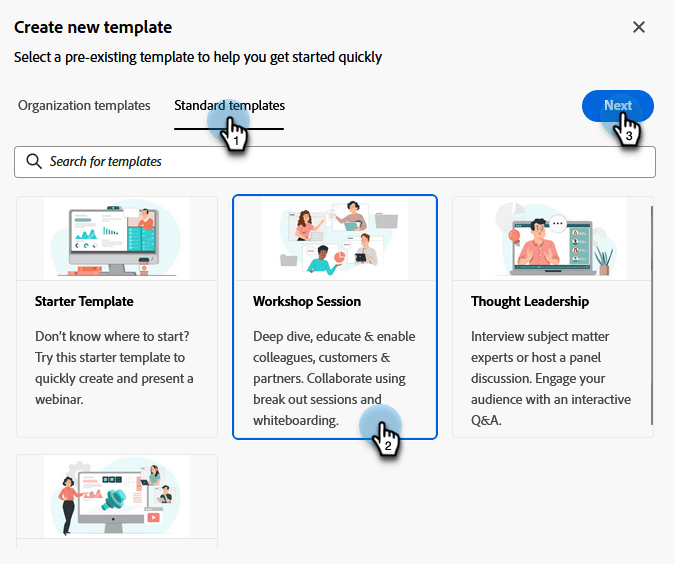 Cochez la case Accéder aux modèles de webinaires interactifs .