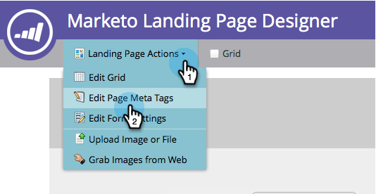Sélectionnez Actions de la page de destination > Modifier les balises de métadonnées de page.