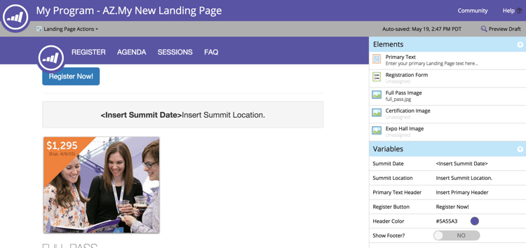 Contrairement aux pages de destination de forme libre, les pages de destination guidées comportent des espaces prédéfinis et verrouillés où vous ajoutez des images.