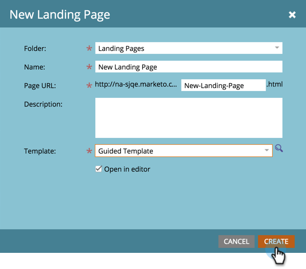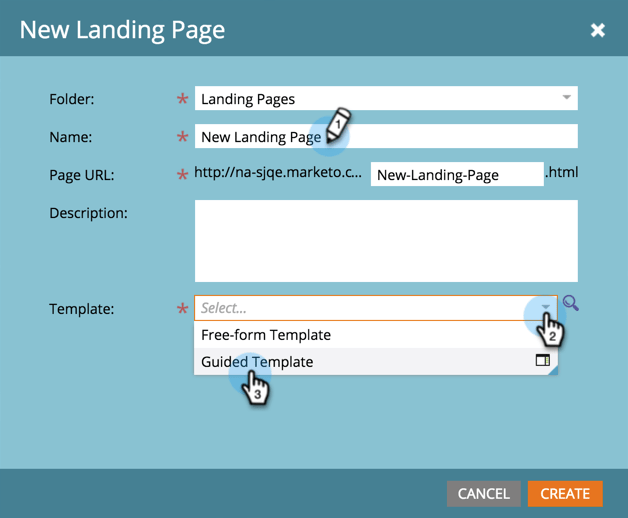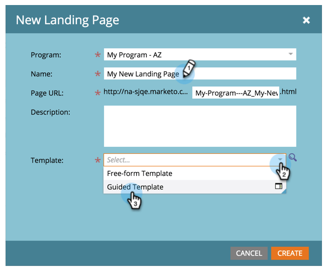 Nommez votre page de destination. Cliquez sur la liste déroulante Modèle et sélectionnez Modèle guidé.