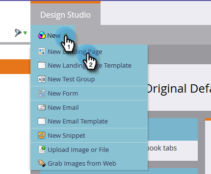 Cliquez sur le menu déroulant Nouveau. Sélectionnez Nouvelle Page De Destination.