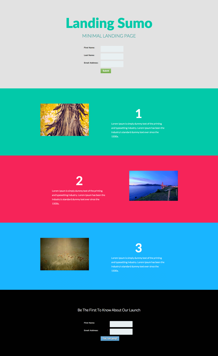 - comprend un en-tête de héros, un texte de héros et un formulaire