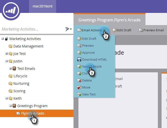 Cliquez sur Actions e-mail, puis sélectionnez Envoyer un exemple.