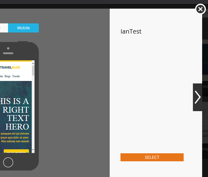 Si vous aimez ce modèle, choisissez-le en cliquant sur Sélectionner en bas à droite. Tu veux continuer à chercher ? Cliquez sur le X en haut à droite. Utilisez les flèches gauche et droite pour faire défiler les modèles.