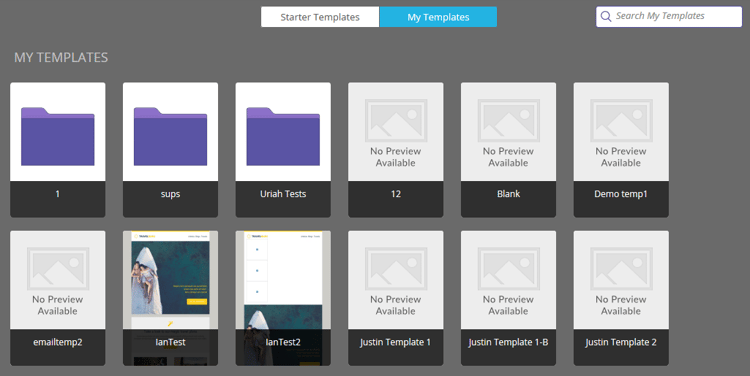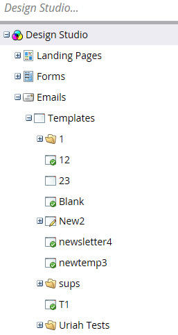 Tous les dossiers qui apparaissent sous E-mails > Modèles dans votre arborescence Design Studio seront disponibles dans Mes modèles.