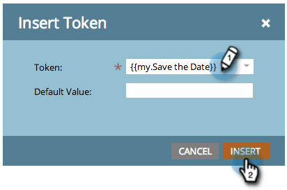 - Lors de la modification de l’e-mail de votre programme, cliquez à l’endroit où vous souhaitez que le jeton aille, puis cliquez sur le bouton Insérer un jeton.