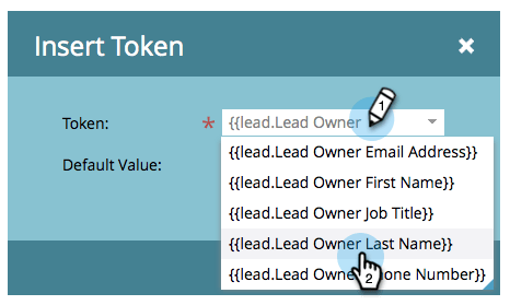 {{lead.Lead Owner» et sélectionnez le jeton{{lead.Lead Owner Last Name}}.
