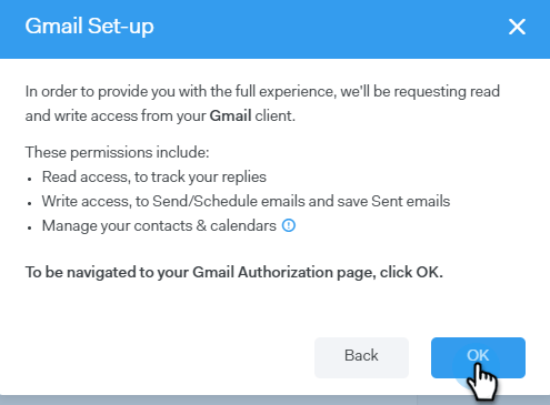 La connexion à Gmail signifie que vous recevrez le suivi des réponses, que vous accéderez au canal de diffusion Gmail, que vous pourrez planifier des e-mails dans Gmail et que vous respecterez les règles en matière d’envoi.