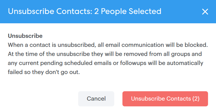Procédez à un désabonnement en bloc pour les contacts qui ne souhaitent plus recevoir de correspondance de votre part.