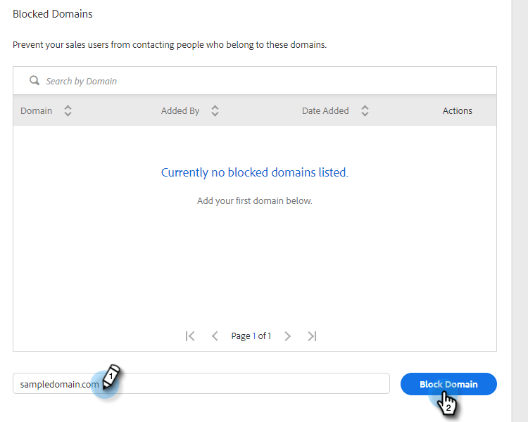 Aidez votre équipe de vente à réussir en l'empêchant d'envoyer accidentellement des e-mails à des concurrents, des pièges à spam connus ou tout autre domaine que vous ne souhaitez pas contacter.