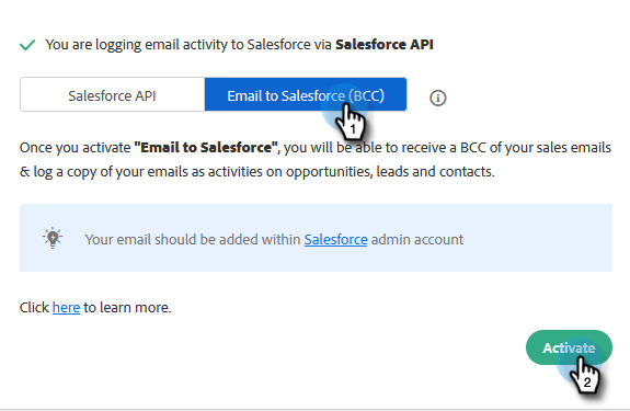Cliquez sur l’onglet E-mail à Salesforce (Cci) puis sur Activer.