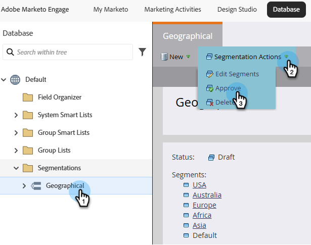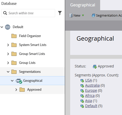 Dans la Segmentation, cliquez sur Actions de segmentation, puis sur Approuver.