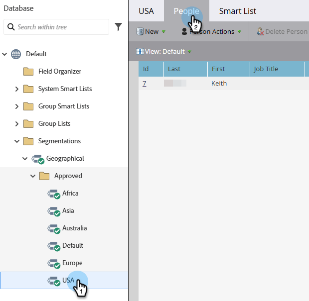 L’onglet Personnes dans le Segment affiche désormais la liste finale des personnes du segment.