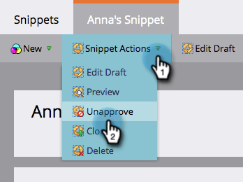 Annuler l’approbation d’un extrait unapprove-a-snippet