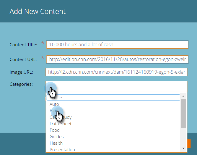 Cliquez sur la liste déroulante Ajouter du contenu et sélectionnez Ajouter du contenu.