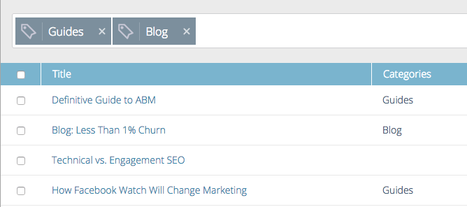 Sur la page Tout le contenu, cliquez sur l’icône de filtre et sous Catégorie, sélectionnez une ou plusieurs catégories de contenu.