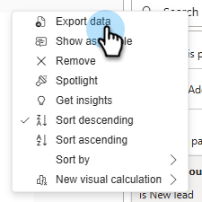 Dans le rapport lui-même, cliquez sur l’icône « plus » (…) dans le coin supérieur droit, puis sélectionnez Exporter.