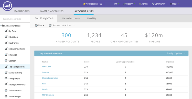 …et effectuez une sélection. Dans cet exemple, nous choisissons notre liste de comptes « High Tech ».