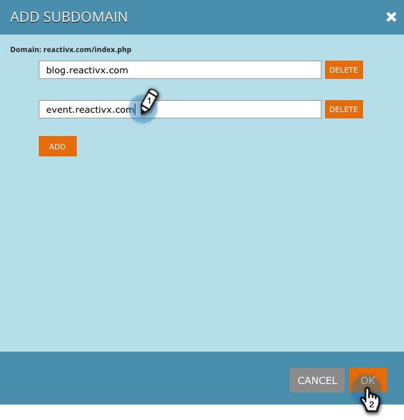 Saisissez l’URL du sous-domaine. Cliquez sur Ajouter ou Supprimer pour gérer votre liste de sous-domaines, puis cliquez sur OK lorsque vous avez terminé.