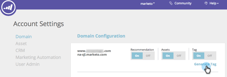 Dans Domain et Domain Configuration, recherchez le domaine approprié et cliquez sur Generate Tag.