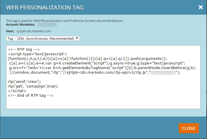 Copiez et collez la balise Web Personalization (RTP) dans votre site Web.