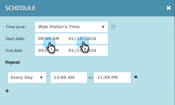 Vous pouvez planifier la campagne web en fonction de l’heure du visiteur web ou d’un fuseau horaire sélectionné.