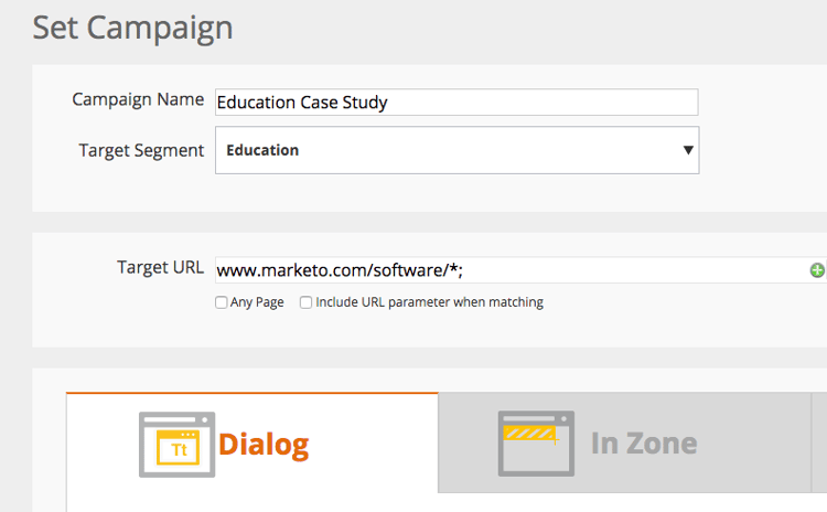 Sélectionnez les pages que votre campagne en temps réel doit afficher à l’aide de l’option Ajouter une URL Target . Cette fonctionnalité fonctionne avec tous les types de campagne (boîte de dialogue, dans la zone, widgets), mais elle est particulièrement utile pour les campagnes dans la zone, où une campagne s’affiche dans l’identifiant de zone pour l’URL cible sélectionnée uniquement. Elle prend en charge l’ajout de plusieurs URL pour cibler différentes pages web.