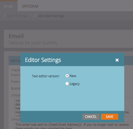 Mise à jour de l’éditeur de texte pour moderniser l’aspect, notamment la mise en forme rationalisée du texte, la modification des images, l’insertion de liens et la modification dans HTML. L’éditeur HTML offre désormais une validation minimale, ce qui permet une modification de code moins restrictive.<iframe width="420" height="315" src="https://www.youtube.com/embed/LmmBN6IQrII" frameborder="0" allowfullscreen></iframe> Cette mise à jour sera automatiquement déployée dans les jours qui suivront la publication de juillet. Ensuite, vous pourrez basculer entre les versions nouvelle et héritée de l’éditeur à partir de Admin > E-mail > Modifier les paramètres de l’éditeur.