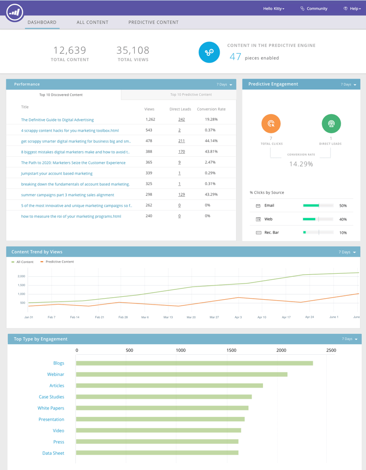 Notre application Contenu prédictif offre une nouvelle expérience utilisateur permettant de suivre, de gérer et de recommander votre contenu par le biais de notre machine learning et de nos algorithmes prédictifs sur les canaux web et e-mail.
