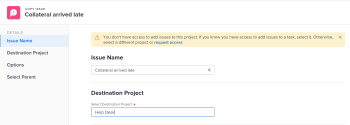 (Le cas échéant) Continuer à copier le problème dans le projet de destination sélectionné sans demander d’accès si vous avez le droit d’ajouter des problèmes à l’une des tâches du projet de destination.