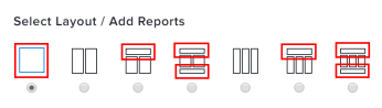 Vous pouvez gérer l’affichage des rapports ajoutés aux tableaux de bord. Lors de la création ou de la modification d’un tableau de bord, vous pouvez sélectionner l’une des sept options de disposition qui spécifient les zones dans lesquelles les rapports peuvent être placés sur le tableau de bord. Veillez à bien choisir la disposition de votre tableau de bord, car trop de colonnes ou certains panneaux comme l’assistant d’IA peuvent avoir un impact sur l’espace d’affichage disponible et rendre votre tableau de bord difficile à afficher.
