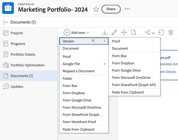 Pour créer une version d’une épreuve dans Workfront Proof :