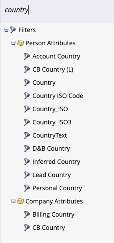 Filters are the criteria we will use to define our audience. As you scroll through the Filters tree, you’ll notice many different folders containing a wide variety of options, from fields synced from SFDC to custom Marketo Engage filters.